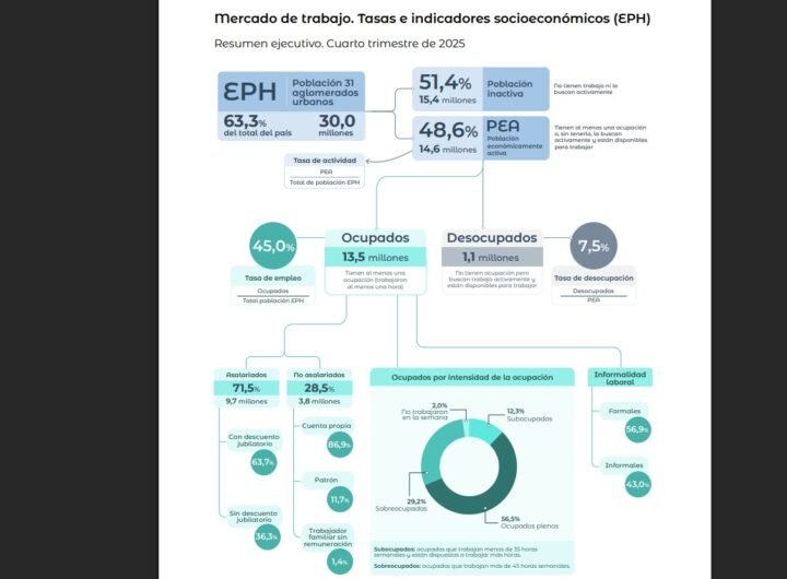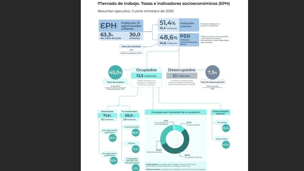 El Instituto Nacional de Estadística y Censos (INDEC) dio a conocer el dato del mercado de trabajo, tasas e...